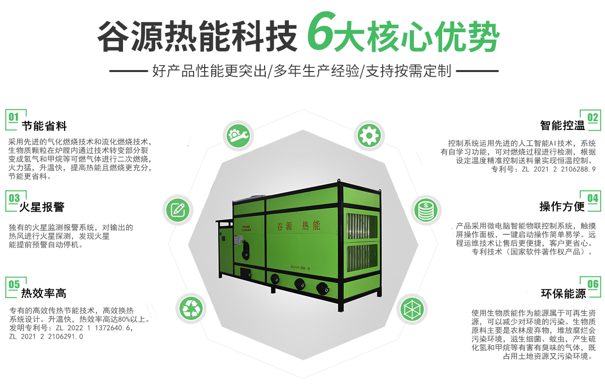 安徽谷源熱能科技有限公司坐落于大別山腳下的紅色革命老區(qū)——六安,是一家專業(yè)從事熱源產(chǎn)品的研發(fā)、生產(chǎn)、銷售、服務(wù)于一體的綜合性企業(yè)。   本公司主要生產(chǎn):糧食烘干用生物質(zhì)環(huán)保熱風爐、生物質(zhì)稻殼熱風爐、生物質(zhì)顆粒取暖爐、浴室用生物質(zhì)顆粒爐、涂裝生產(chǎn)線用生物質(zhì)顆粒爐、燃油熱風爐、天然氣熱風爐等熱源產(chǎn)品,公司產(chǎn)品采用微電腦控制,可自動點火,根據(jù)設(shè)定溫度自動進料、自動控溫。使用燃料為生物質(zhì)顆粒,屬于可再生資源,相對運行成本低,節(jié)能環(huán)保。   我們以顧客為導向,一直致力于以提高產(chǎn)品質(zhì)量、降低客戶使用成本、節(jié)能環(huán)保為研發(fā)目標,不斷創(chuàng)新。   公司秉承“用心服務(wù),客戶至上;質(zhì)量為本,精益求精!”的經(jīng)營理念,以“節(jié)能環(huán)保”為使命,以“綠色燃料”為保障,以“先進燃燒技術(shù)”為支撐,繼續(xù)推進節(jié)能環(huán)保事業(yè)不斷向前發(fā)展。為改善能源結(jié)構(gòu),打造低碳城市,創(chuàng)建環(huán)境美好資源節(jié)能型社會,做出不懈努力。我們愿意與您真誠合作、共創(chuàng)雙贏,讓我們攜手共創(chuàng)輝煌的明天。竭誠歡迎各界朋友光臨惠顧!